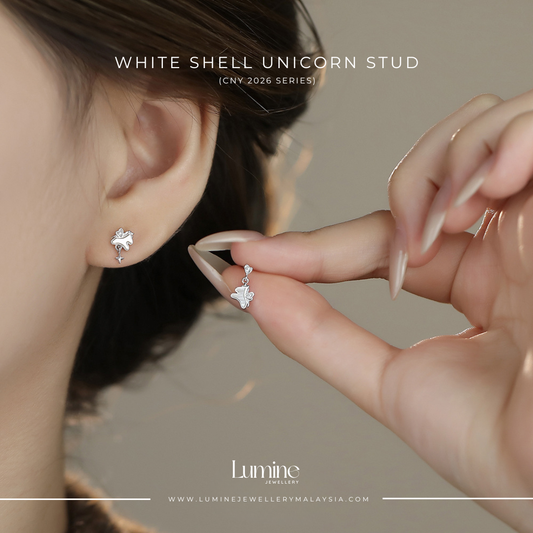 White Shell Unicorn Studs 白贝马上有钱耳环