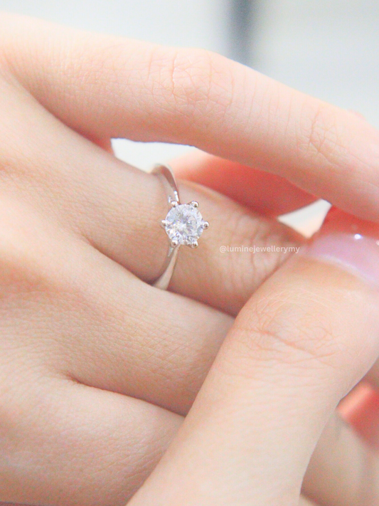 Classic Six Claw Moissanite Diamond Ring (With Cert)